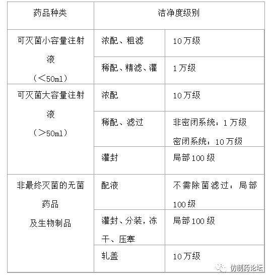 表1-3 非无菌药品及质料药生产环境的空气洁净度级别